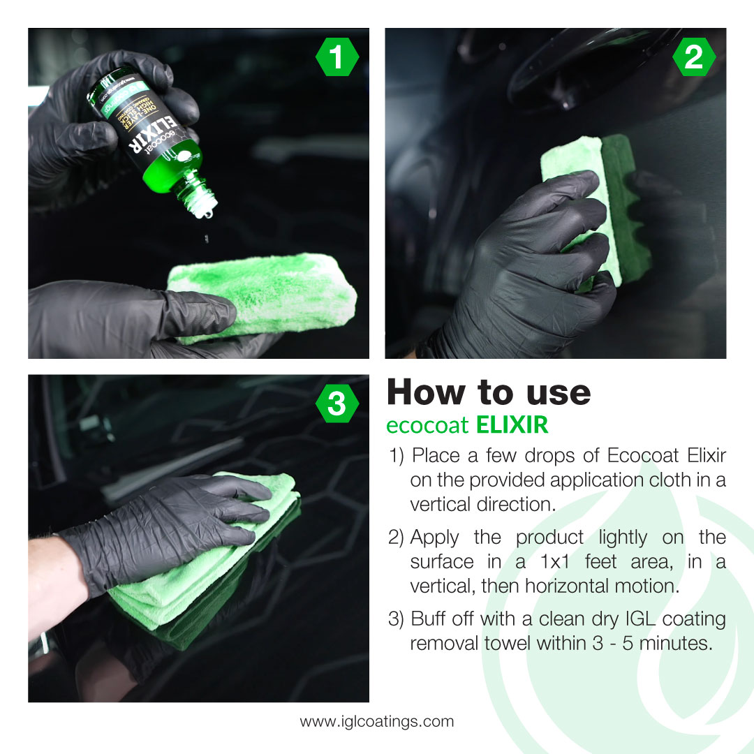 Experience a choice of indoor and outdoor* application with Ecocoat Elixir! Enhancing efficiency and convenience for professional installers. Elixir’s the game-changing ultimate one-layer ceramic coating for professional detailers.
