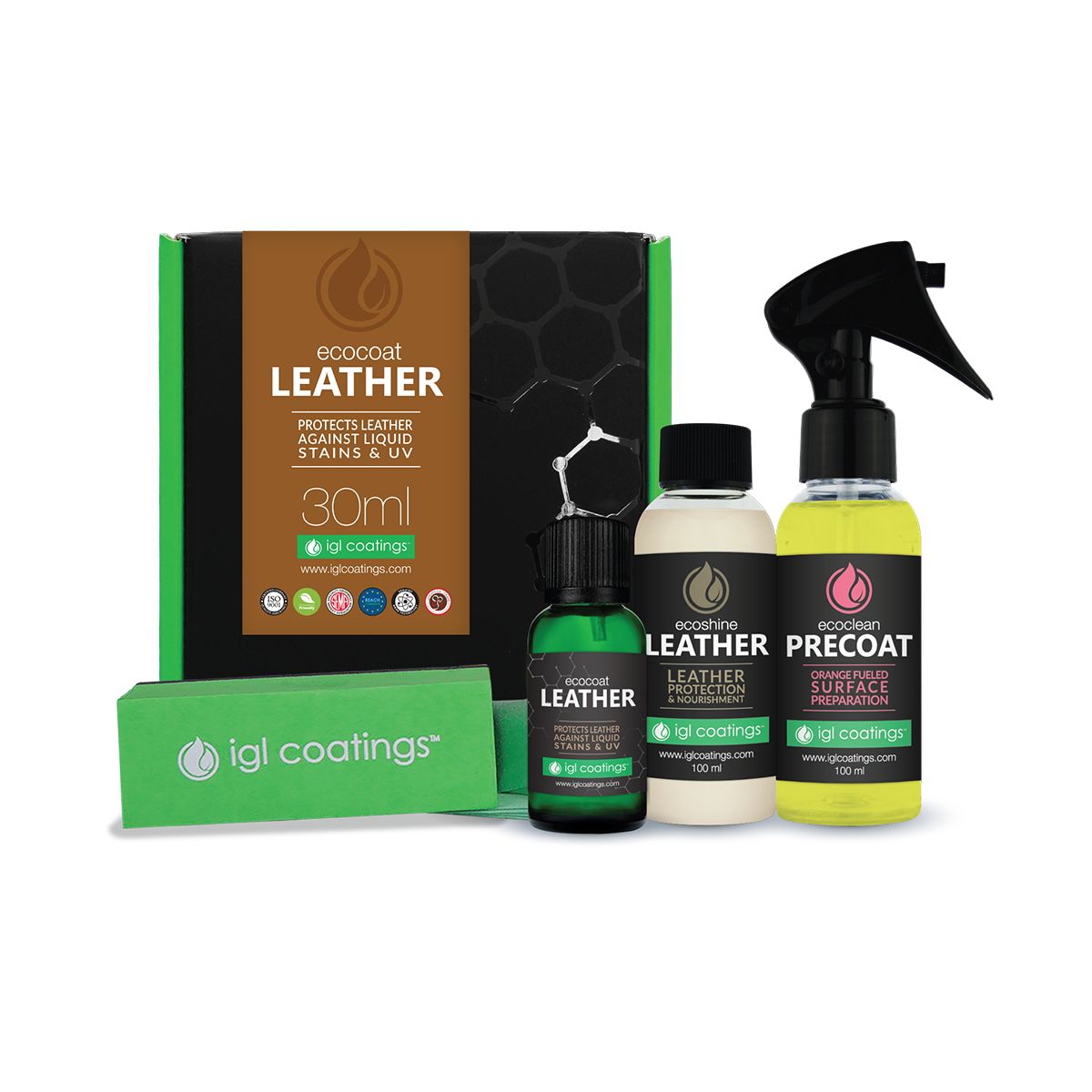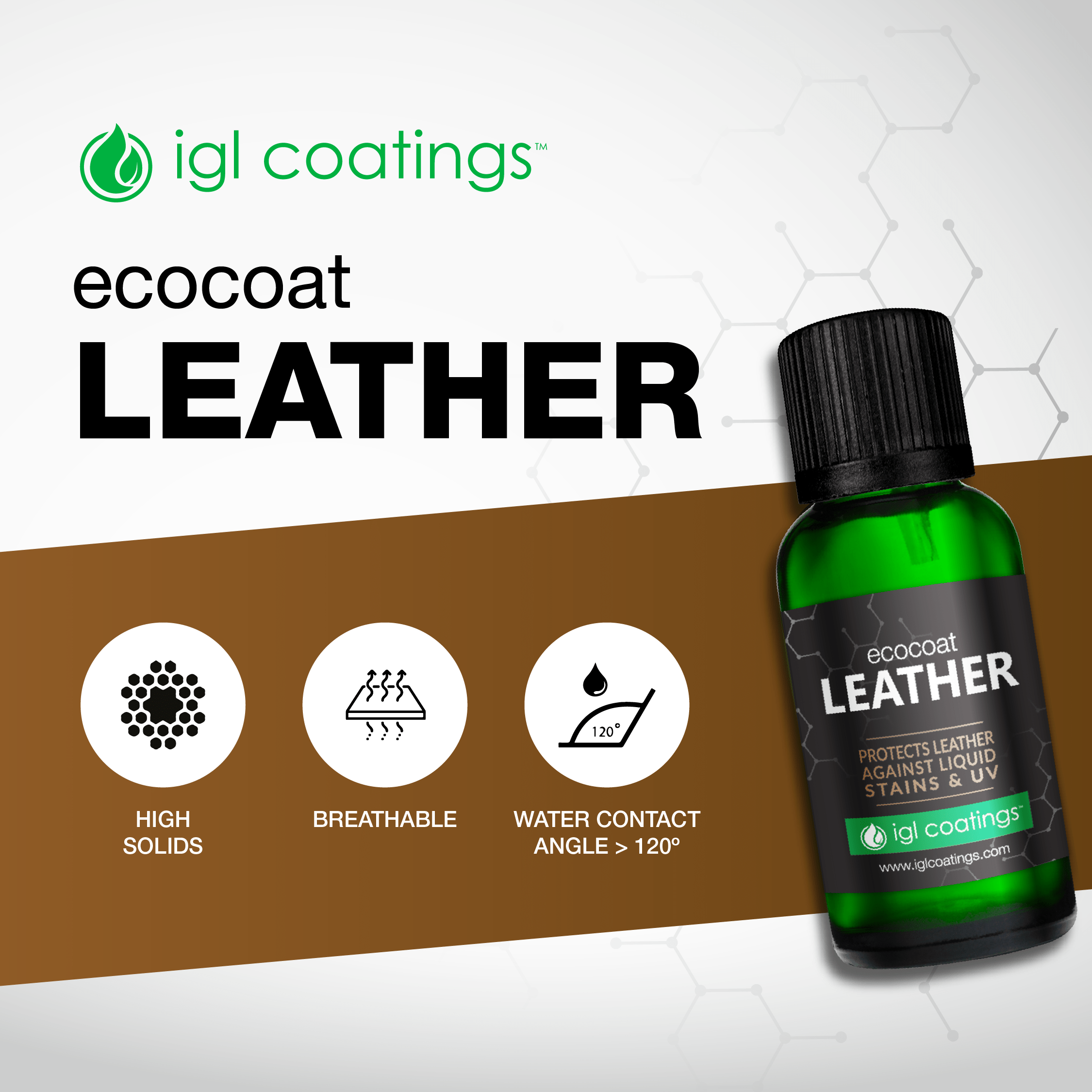 Traditionally, leathers require oils and fats to keep it soft and supple and to increase its lifespan. Ecocoat Leather from IGL Coatings is breathable, flexible and water resistant making it a top choice for leathers.