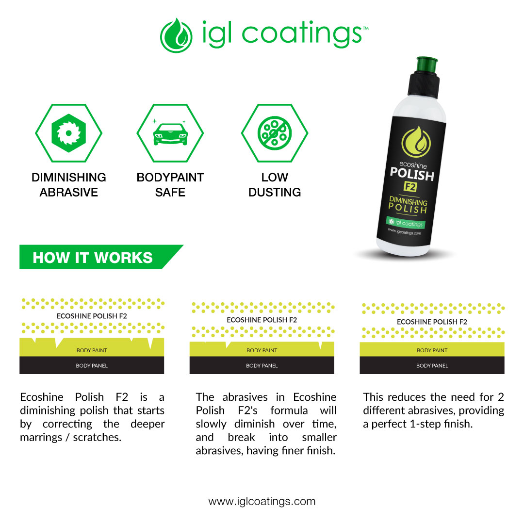 Ecoshine Polish F2 is the the most versatile polishing compound with diminishing abrasive formula for those who demand excellence in their car polishing techniques.
